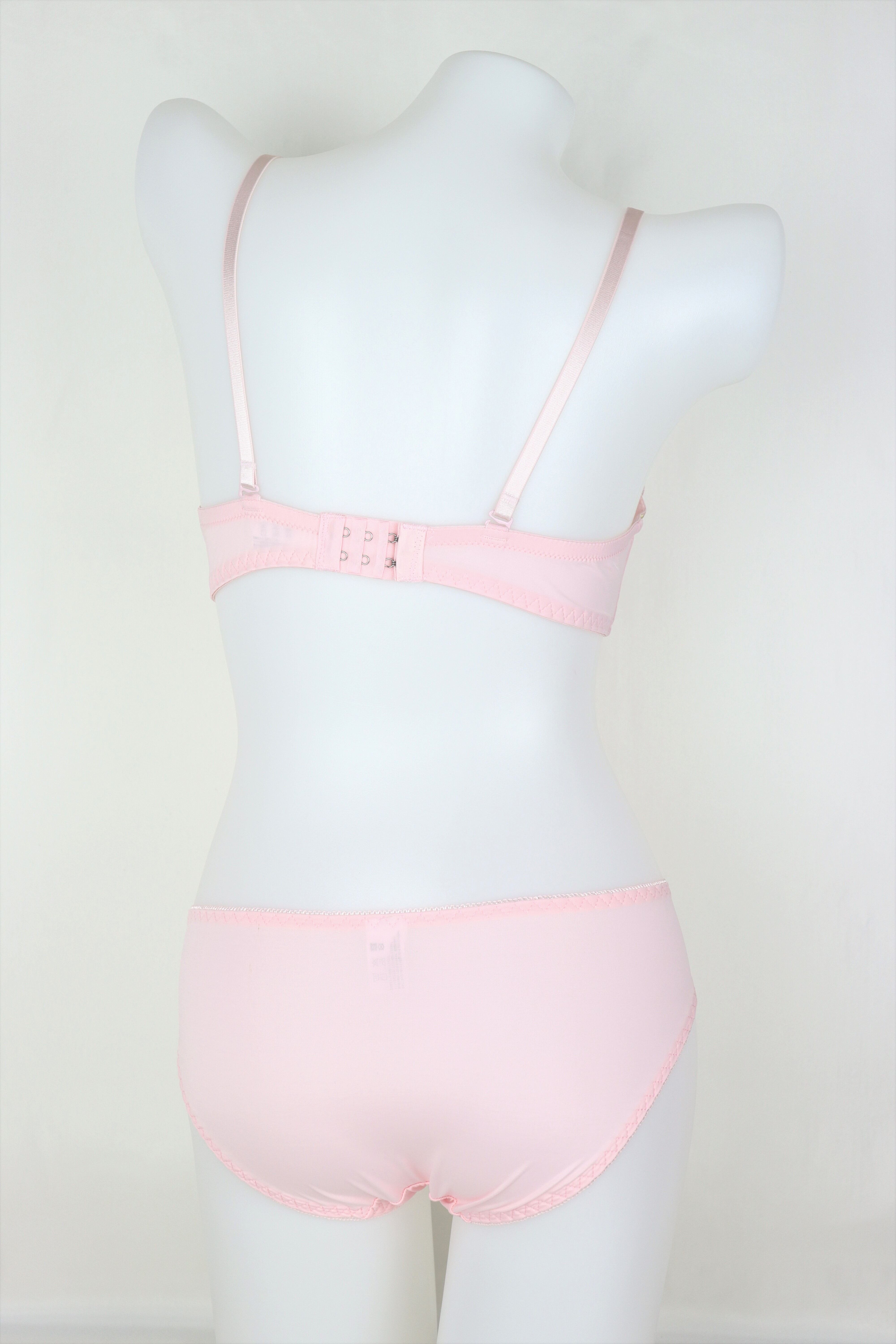 ・花柄チュールレース仕様のフェミニンノンワイヤーブラジャー&ショーツセット